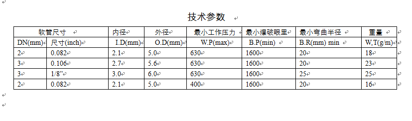 a. 材质 material :芯管材料 尼龙PA11(Nylon PA11) 增强编织层 芳纶纤维( Aramid fibre)